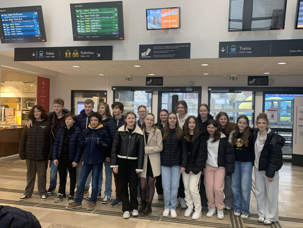 Am 10. März 2024 machten sich die 11 Schüler*innen aus den Klassen der 9a und 9b mit Frau Matt-hias und Frau Buck auf den Weg zum lang ersehnten Frankreichaustausch nach Chaumont. An unserem Anreisetag besuchten wir für einige Stunden Paris, sodass wir einen kurzen Überblick über die wunderschöne Stadt hatten. Danach fuhren wir weiter nach Chaumont, wo wir herzlich in unseren Gastfamilien sowie von der Schule empfangen wurden. Wir schnupperten in ein paar Unterrichtsstunden, welche strenger waren als gedacht, und erlebten den kompletten Schulalltag :). Am zweiten Tag durften wir die Kleinstadt Chaumont und ihre coole Geschichte erleben nach einem gemeinsamen Essen mit unseren Austauschpartner*innen in der großen Schulkantine des Collège La Rochotte. Am dritten Tag fuhren wir alle zusammen nach Dijon, wo wir den ganzen Tag verbrachten. Nach einer Führung durch die Stadt entlang der wichtigsten Sehenswürdigkeiten besuchten wir das Musée des Beaux Arts, das uns die Geschichte Dijons eindrucksvoll vor Augen führte, und hatten Freizeit, um in der Stadt prächtig shoppen zu gehen! Schon fast am Ende der Woche angekommen waren wir noch am Morgen in der französischen Schule und durften am Sportunterricht teilnehmen, fuhren jedoch im Anschluss auf ein kleines Picknick zum Mémorial Charles de Gaulle, in dessen Museumskomplex das Leben und Wirken dieses bedeutenden französischen Politikers interaktiv dargestellt wird. An dieser Stelle auch ein großes Dankeschön an den Förderverein, der uns diesen Besuch erst ermöglicht hat. Am Abend gingen wir mit unseren Partner*innen zum Bowlen und verbrachten alle zusammen eine letzte gemeinsame Zeit, welche wir zu 100% genossen haben. Doch abgesehen von dem vollen und wunderbaren Austauschprogramm hatten wir genügend Zeit für unsere Gastfamilien und ihre Freizeitpläne. Manche der teilnehmenden Schüler*innen hatten sogar die Ehre, köstliche Spezialitäten aus Chaumont zu probieren, wie z.B traditionelle Quiche oder auch gekochte Schnecken mit Marinade.